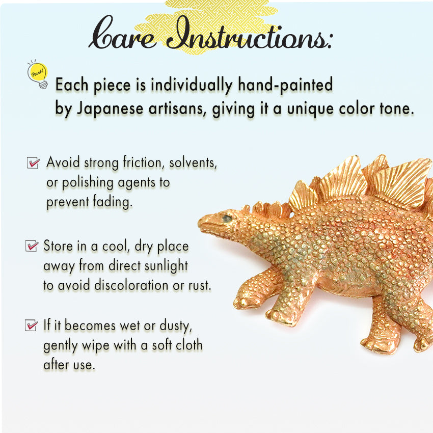 This handcrafted Japanese Stegosaurus brooch captures the strength and elegance of this ancient creature. Each scale and plate is carefully sculpted to highlight its lifelike texture. Though small, it makes a bold statement on jackets, shawls, or kimono. A wearable art piece that combines Japanese craftsmanship with prehistoric charm — perfect for collectors and creative souls alike.
