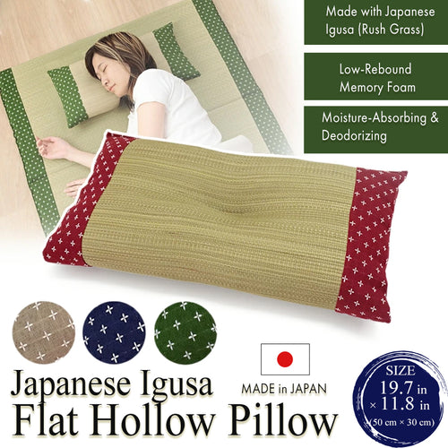 Premium Japanese Igusa Rush Grass Sleep Pillow – Kyushu Natural Igusa Pillow with Memory-Foam Support, Deodorizing & Humidity Control, Flat Hollow Design