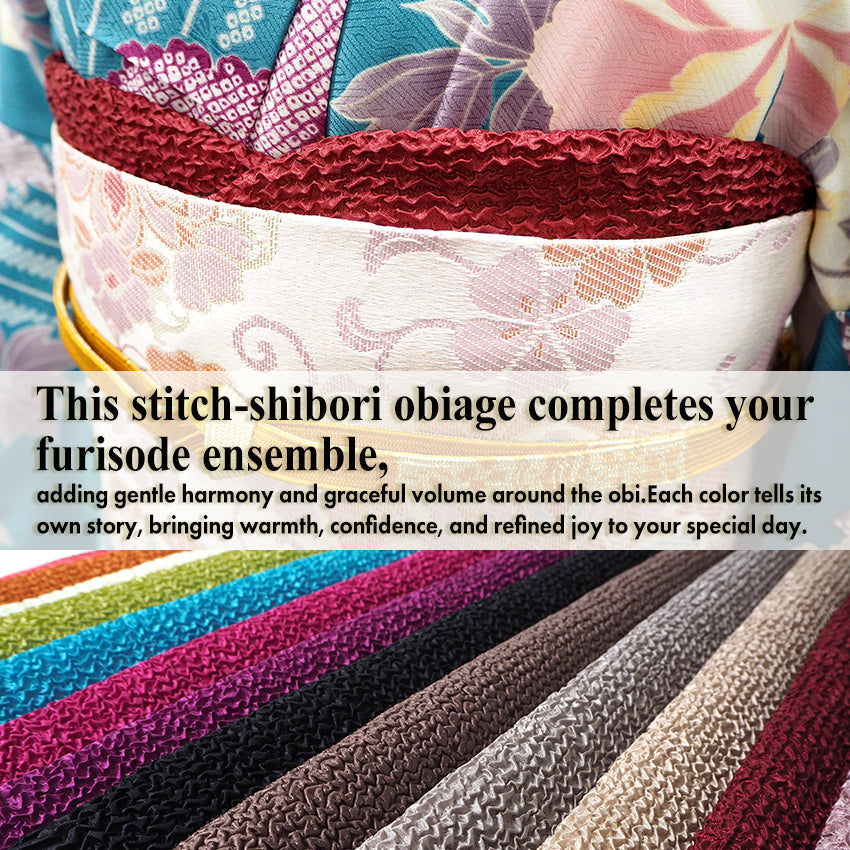 Furisode “Stitch-Shibori” Obiage Scarf – Elegant Kimono Accessory in 14 Colors for Formal Wear for Adult Ceremony