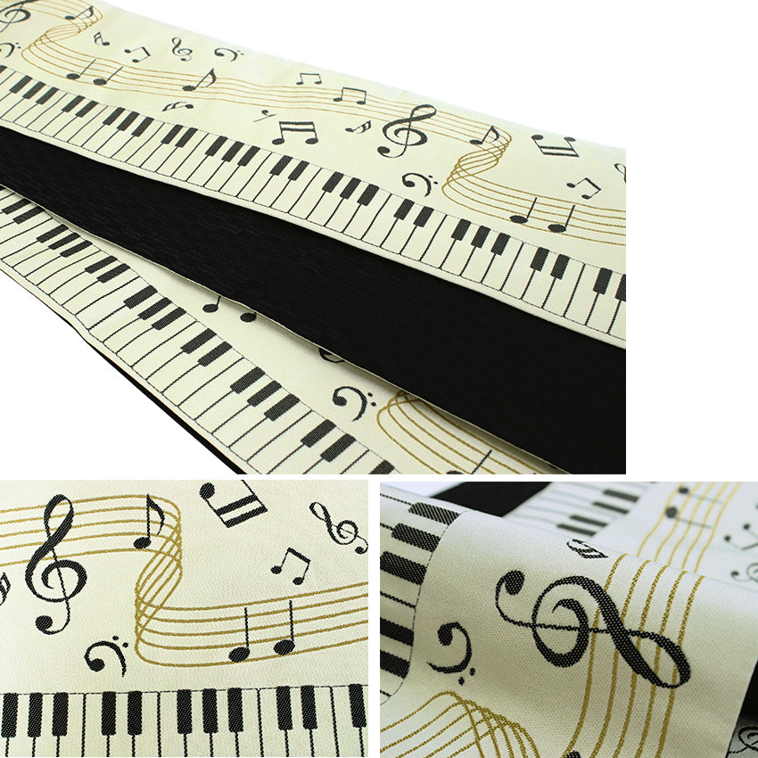 Front: Piano keys and musical notes on beige