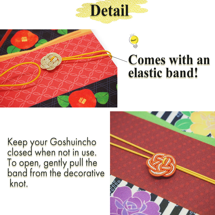 Secure Closure with Decorative Elastic: Comes with a removable band and decorative knot (mizuhiki style) to keep the book closed securely.
