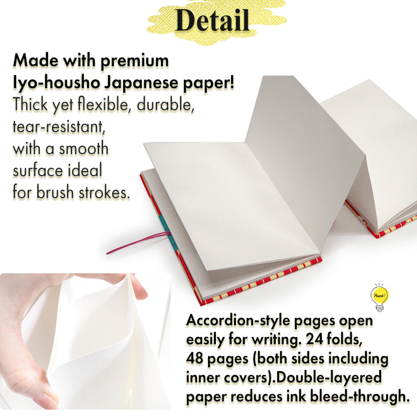 Premium Japanese Paper Inside: Made of Iyo-housho paper (The finest Japanese paper), pure white and resistant to ink bleed-through.