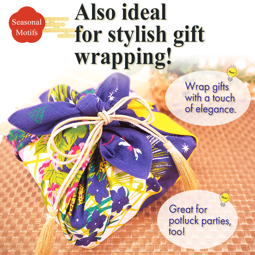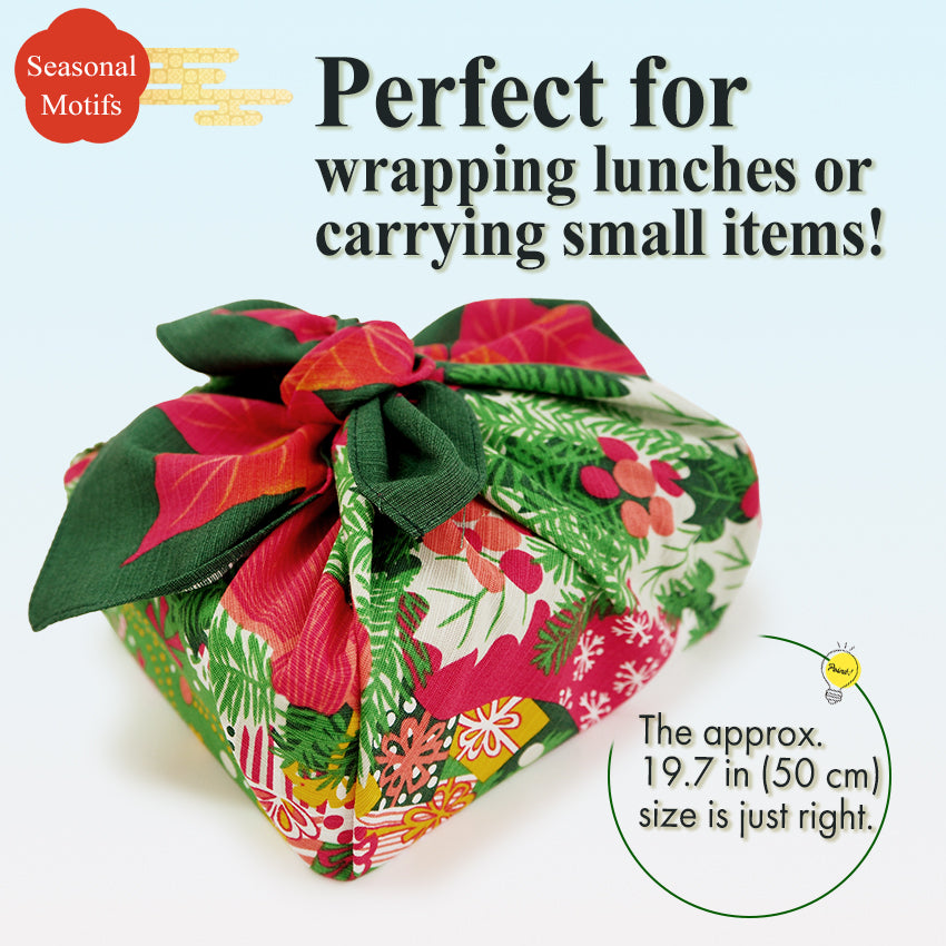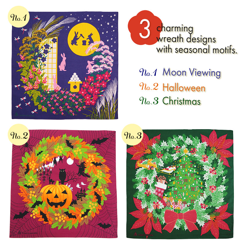 Discover a new way to enjoy furoshiki — beyond wrapping. Our Seasonal Wreath Furoshiki features beautifully rendered wreath motifs for moon-viewing, Halloween, and Christmas. Made of 100% cotton (shantung weave), this 19.7 in × 19.7 in(≈50×50 cm) square cloth is washable and reusable. Use it to wrap gifts or bento boxes, or display it as a tapestry, table cloth, or wall décor to bring seasonal elegance into your space. The design turns everyday items into visual delight while reducing waste. Celebrate each season with style and sustainability in one charming piece.