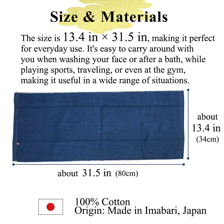 “Experience the luxury of Imabari in every wash with our reversible face towel. Crafted in the famed Imabari region of Japan, this 100% cotton towel features lush softness, excellent water absorption, and dual-tone design that gives you two styles in one. Sized at 13.4 in × 31.5 in (34×80 cm), it's perfect for everyday use—face, gym, travel—and still light enough to carry around. Its gentle touch soothes sensitive skin, and its durable construction keeps its plush feel wash after wash. A thoughtful gift full of Japanese artisan spirit that elevates the simple act of drying off into a moment of comfort.”