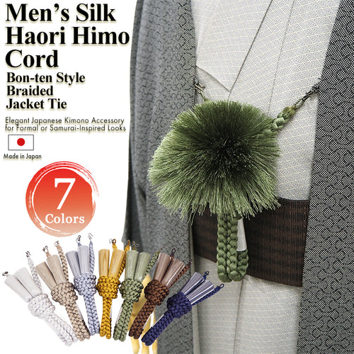 Men’s Silk Haori Himo Cord – Bon-ten Style Braided Jacket Tie, Elegant Japanese Kimono Accessory for Formal or Samurai-Inspired Looks