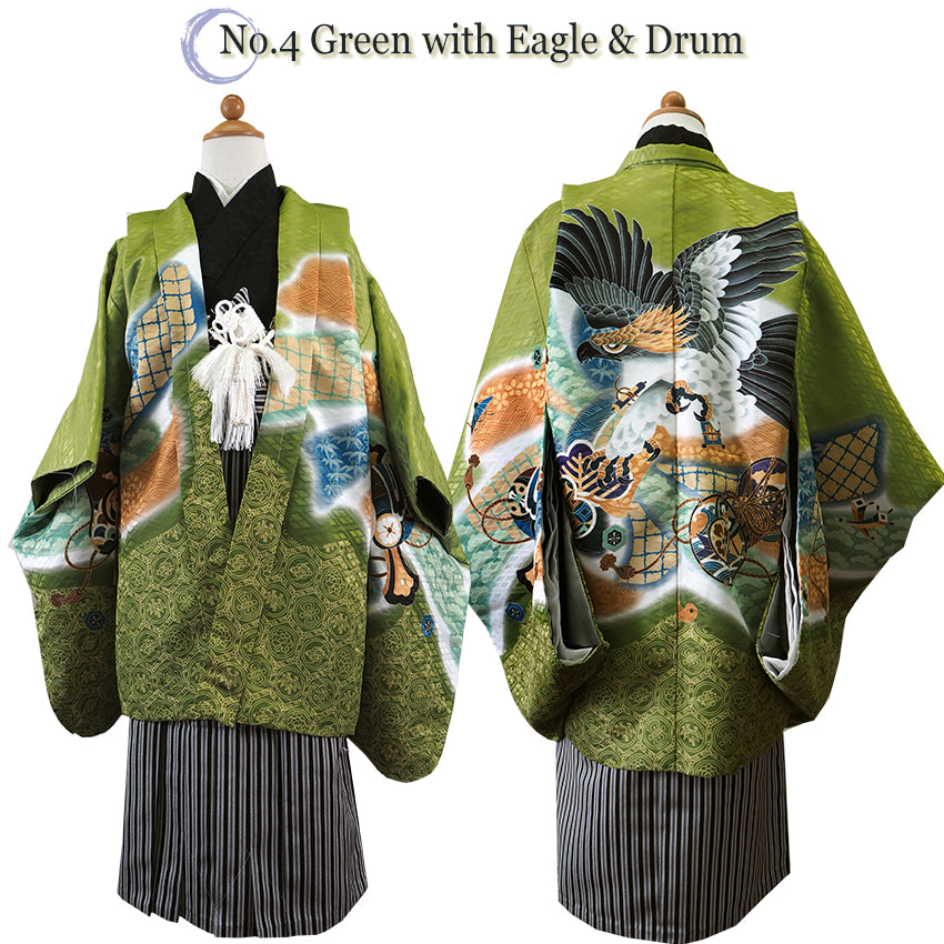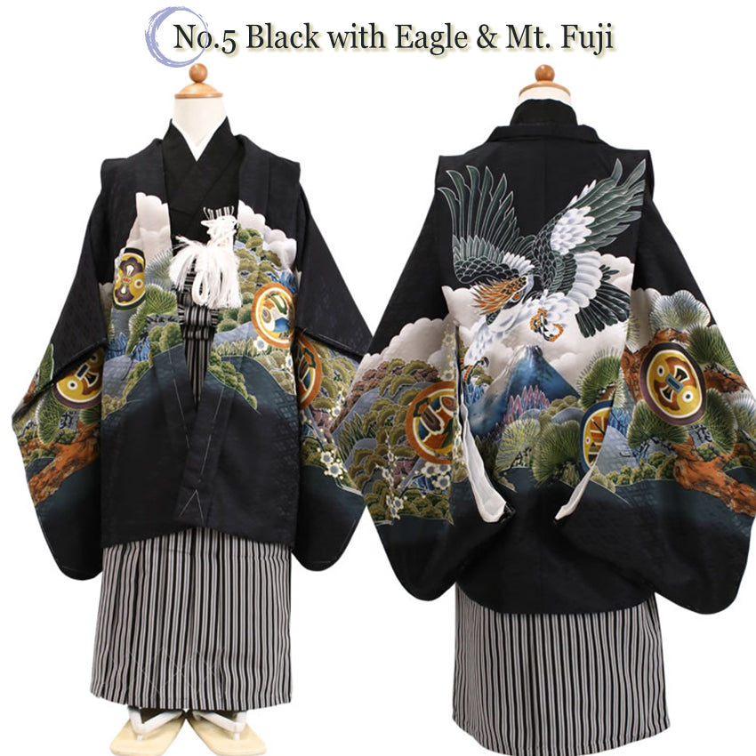 1. White with Eagle & Noshi | 2. Blue with Eagle & Drum | 3. Navy with Kabuto & Fan | 4. Green with Eagle & Drum | 5. Black with Eagle & Mt. Fuji