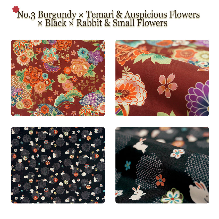 No.3 Burgundy × Temari & Auspicious Flowers × Black × Rabbit & Small Flowers