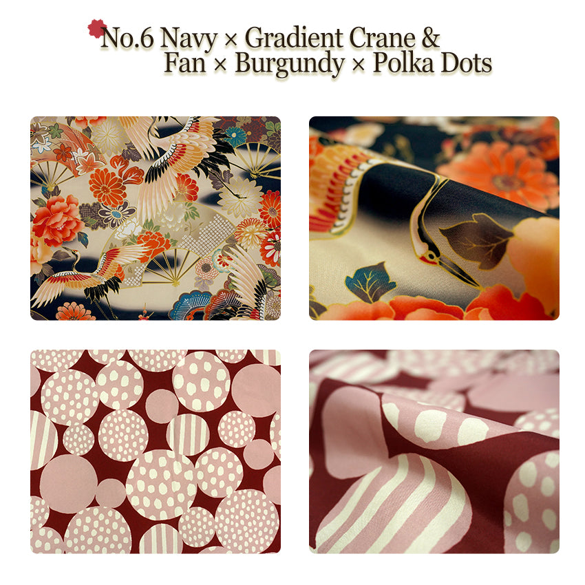 No.6 Navy × Gradient Crane & Fan × Burgundy × Polka Dots