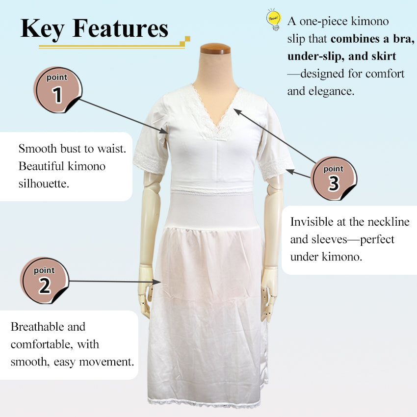 ✅ Designed for Kimono Lovers: A traditional kimono slip with built-in Wabura-style bust support for a smooth, elegant silhouette.