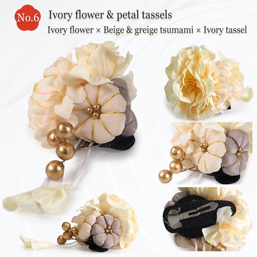 “Delicate tsumami flower hairpiece for girls & women—elevate any hairstyle with timeless Japanese charm”