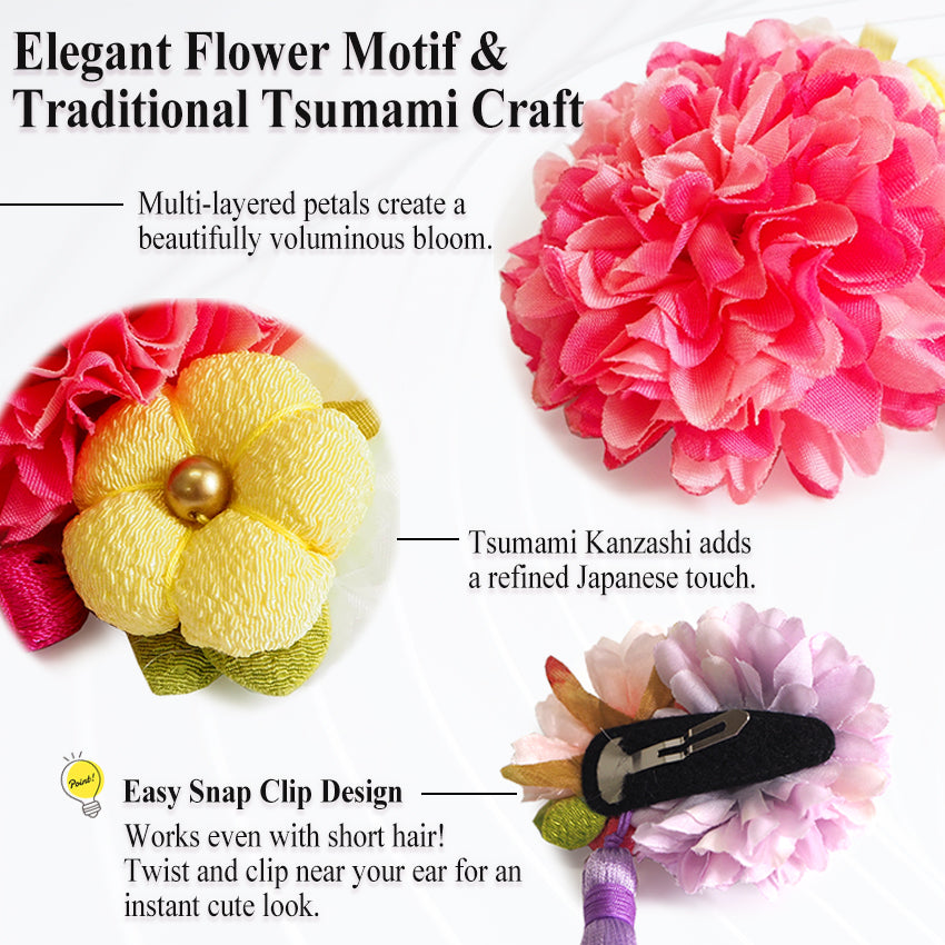 ✅Versatile Tsumami Floral Hair Ornament for Kids & Adults – Elegant Japanese Flower Hair Accessory.
