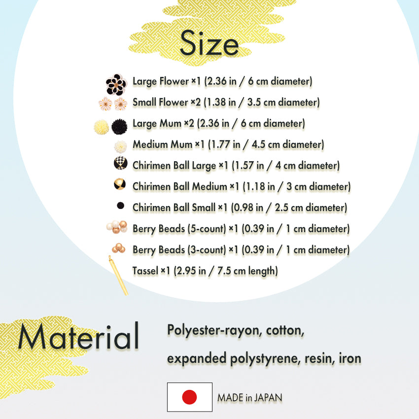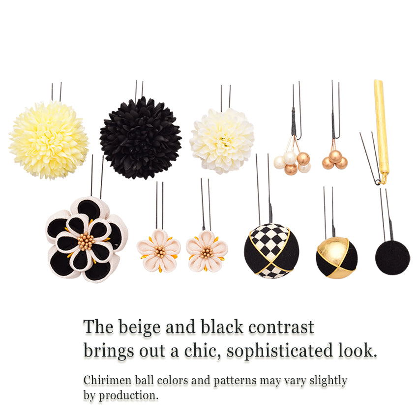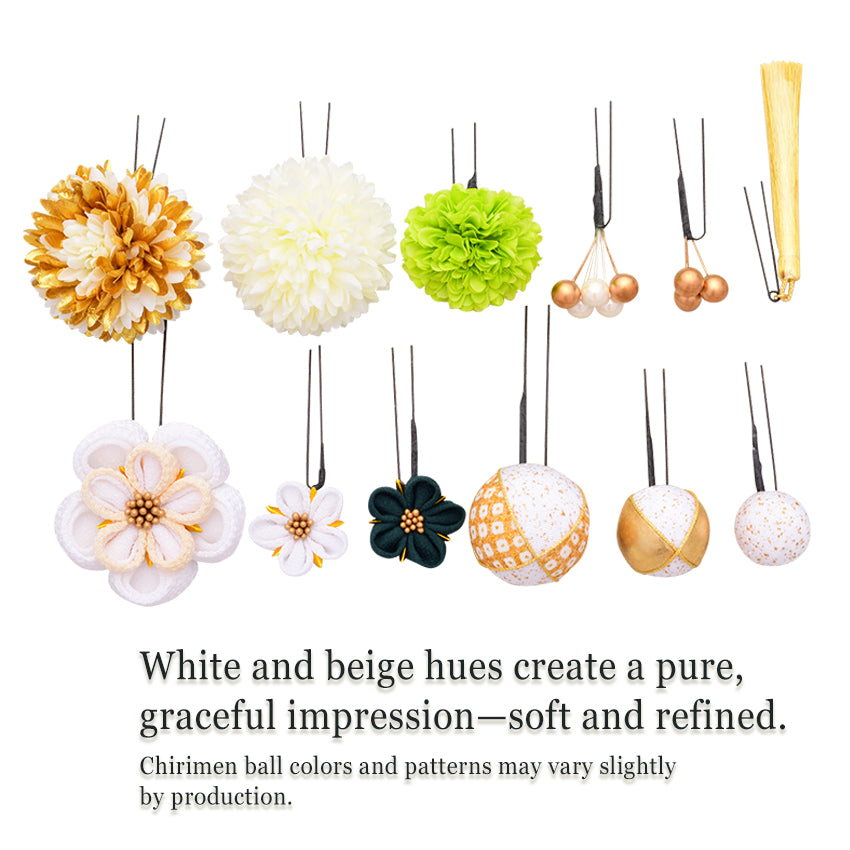 Total: 12 pieces. U-pin type clips. Please note: chirimen ball colors/patterns may vary slightly by production lot. |