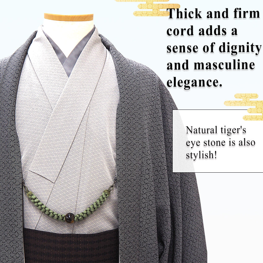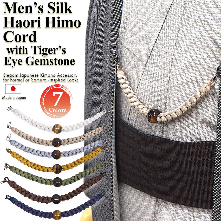 • 將圖片載入圖庫檢視器 Men’s Silk Haori Himo Cord with Tiger’s Eye Gemstone – Hand-Braided Japanese Jacket Tie for Samurai-Inspired or Formal Kimono Style