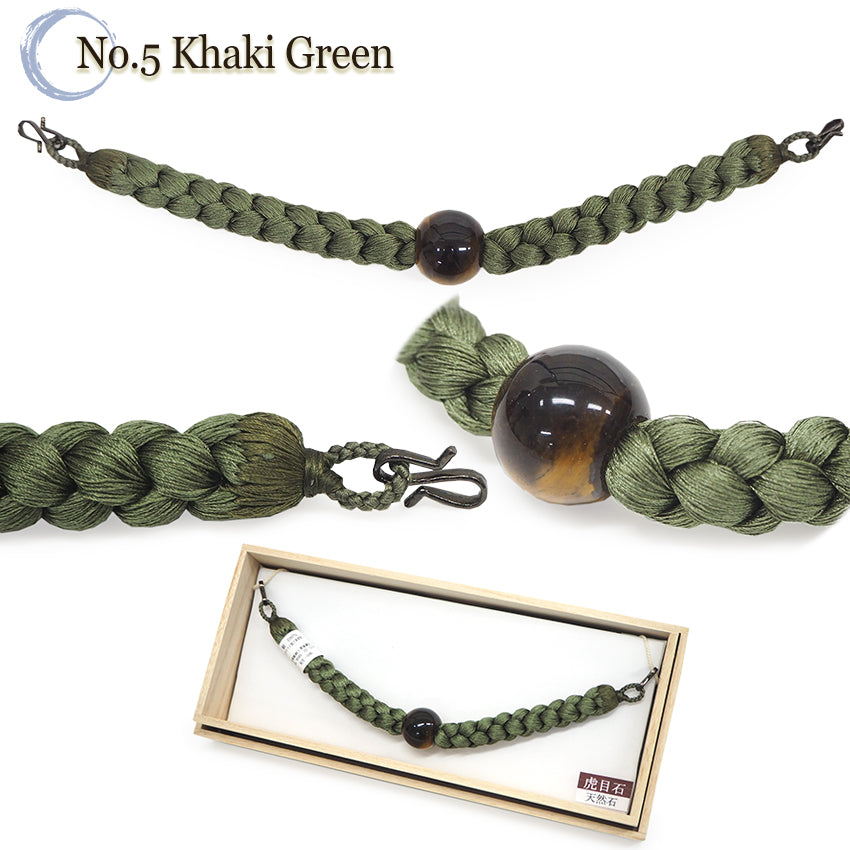 1×Silk Haori Himo Cord with Tiger’s Eye Gemstone