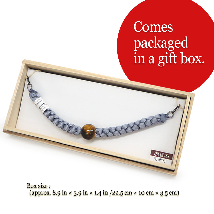 Handcrafted in Japan with 100% silk, this round-braided cord features a natural Tiger’s Eye stone centerpiece—believed to bring strength and focus.
