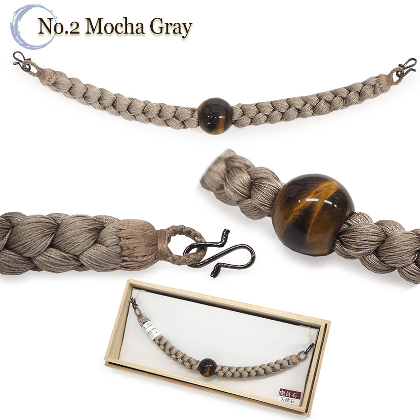 “Channel strength and clarity with Tiger’s Eye – a hand-braided silk haori cord for powerful elegance.”