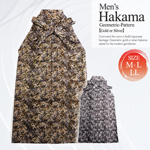 Men’s Hakama Geometric‑Pattern – Traditional Japanese Formalwear in Gold or Silver