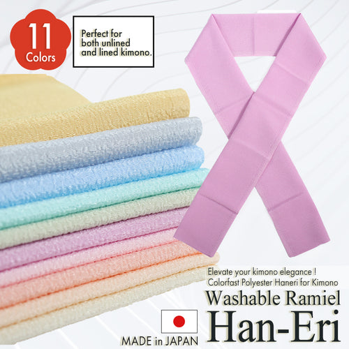 Lamiere Japanese Han-Eri Collar (soft pastel shades)– Washable & Colorfast Polyester Haneri for Kimono, 11 Color Options